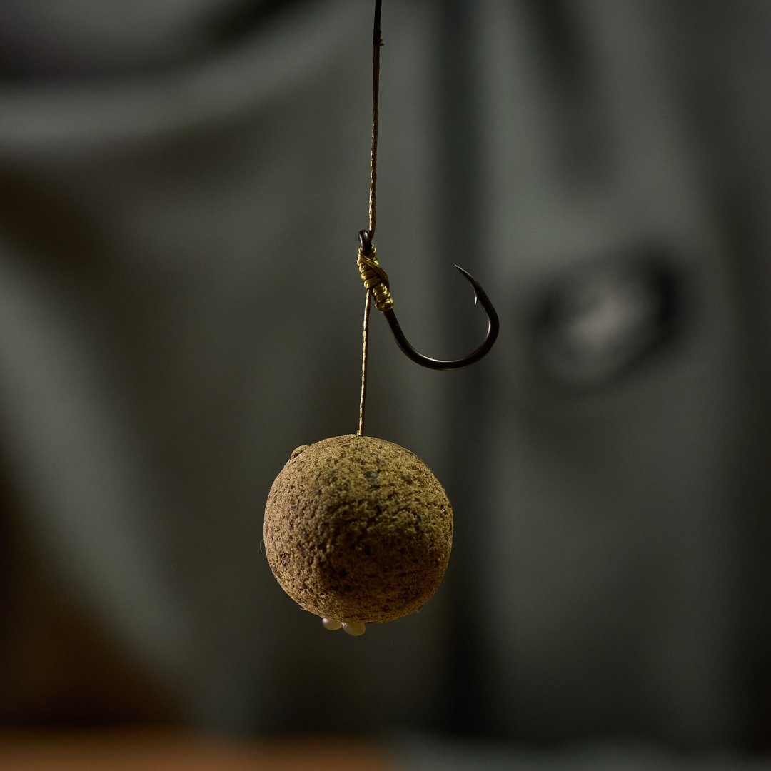 El cebo queda separado del anzuelo, lo que permite que la carpa lo aspire con facilidad. Cuando intenta escupirlo, el anzuelo gira y se clava de forma natural.