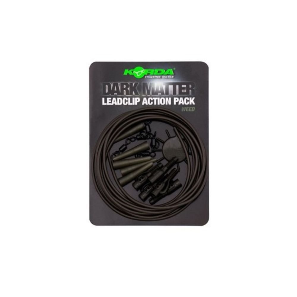 El Korda Dark Matter Action Pack, disponible en colores Gravel y Weed, está diseñado para pescadores que buscan un montaje eficaz, ordenado y seguro. Este pack incluye todos los componentes necesarios para realizar cinco montajes completos con lead clip, con la posibilidad de utilizarlos en modo semi-fijo o running según tu preferencia.