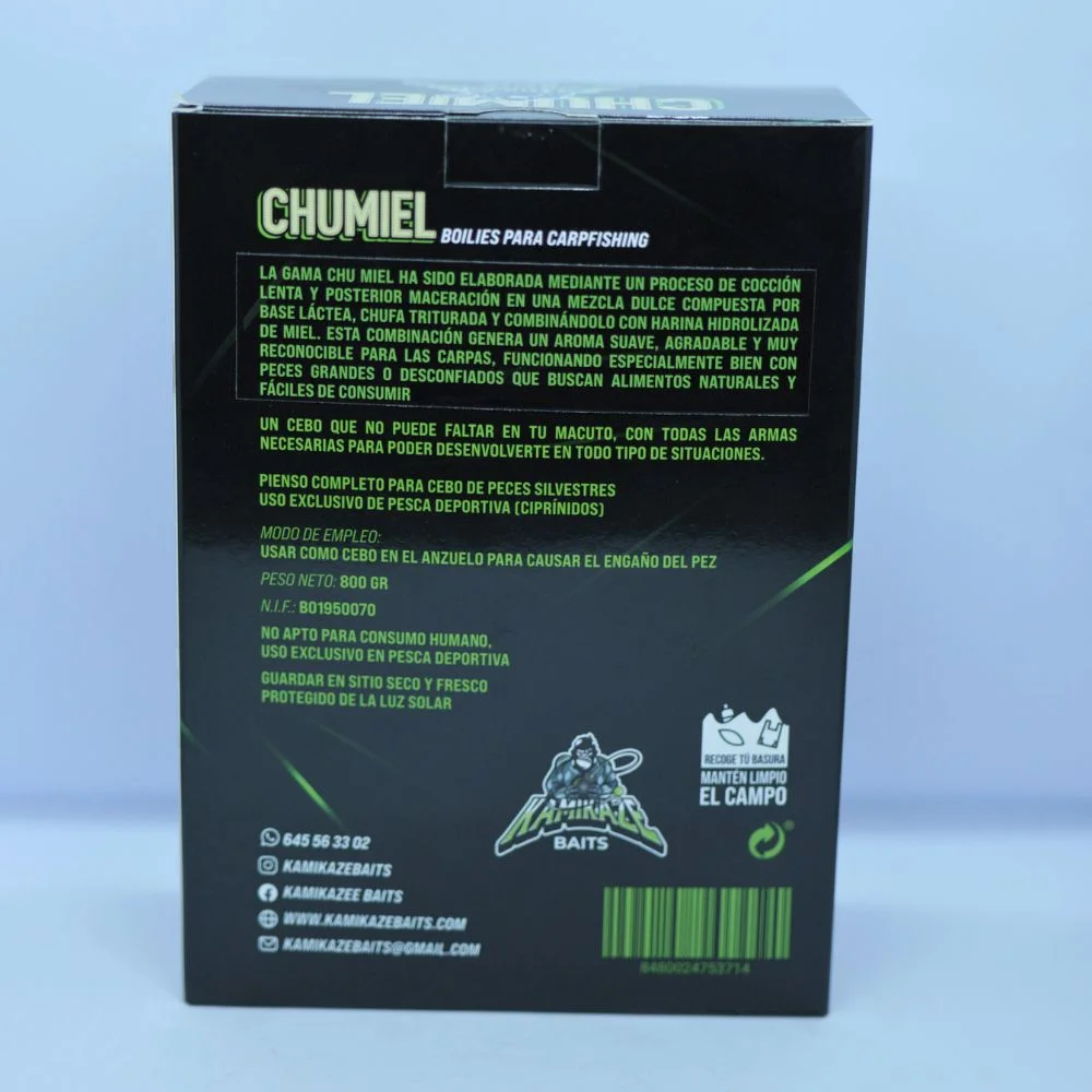 Los Boilies Chu Miel 800 g – Kamikaze Baits son un básico que no puede faltar en tu macuto: un cebo dulce, selectivo y eficaz durante todo el año.