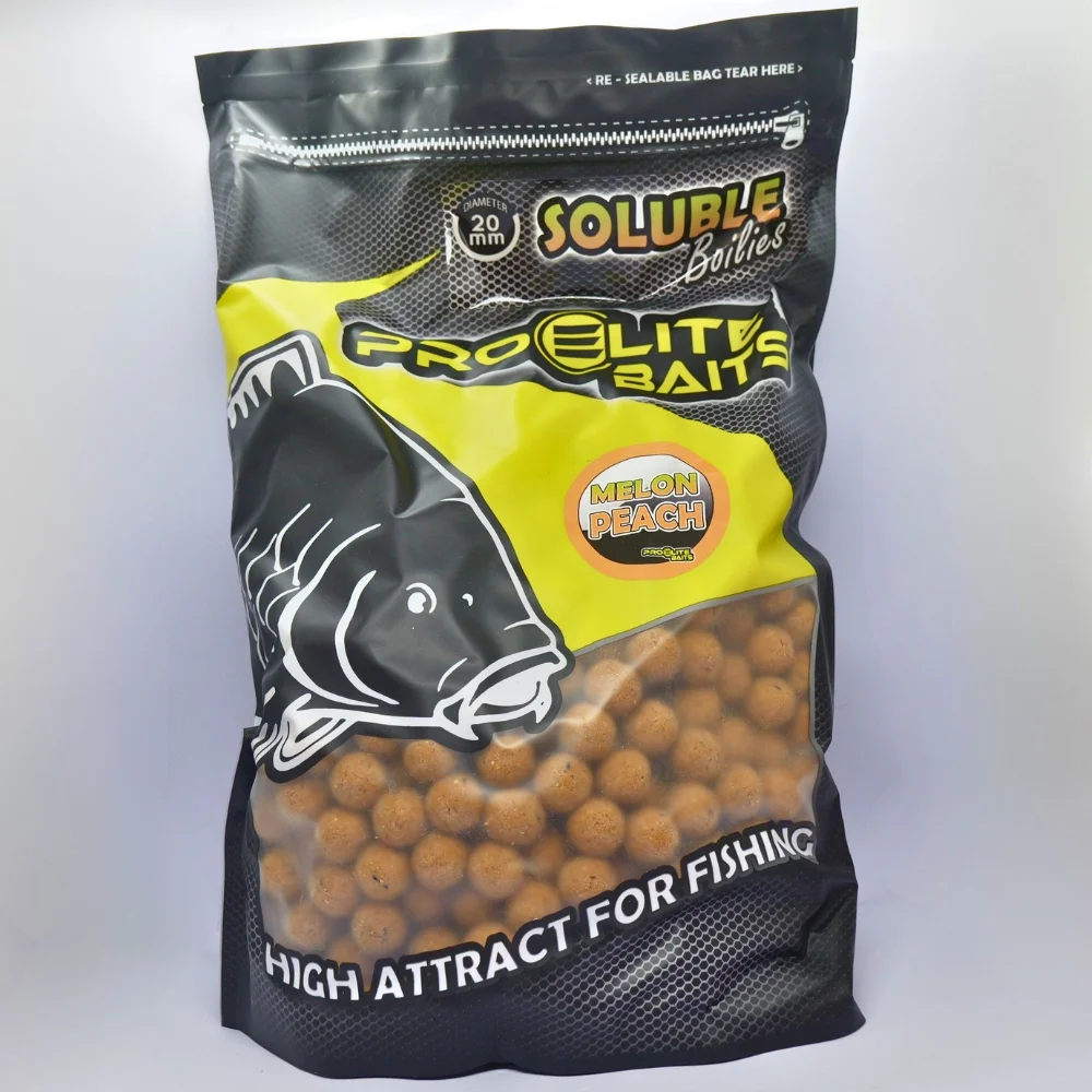 Los Boilies Solubles Melon Peach 20 mm – Pro Elite Baits son la elección perfecta para pescadores que buscan un cebo dulce, activo, altamente atractivo y capaz de rendir en cualquier situación.
